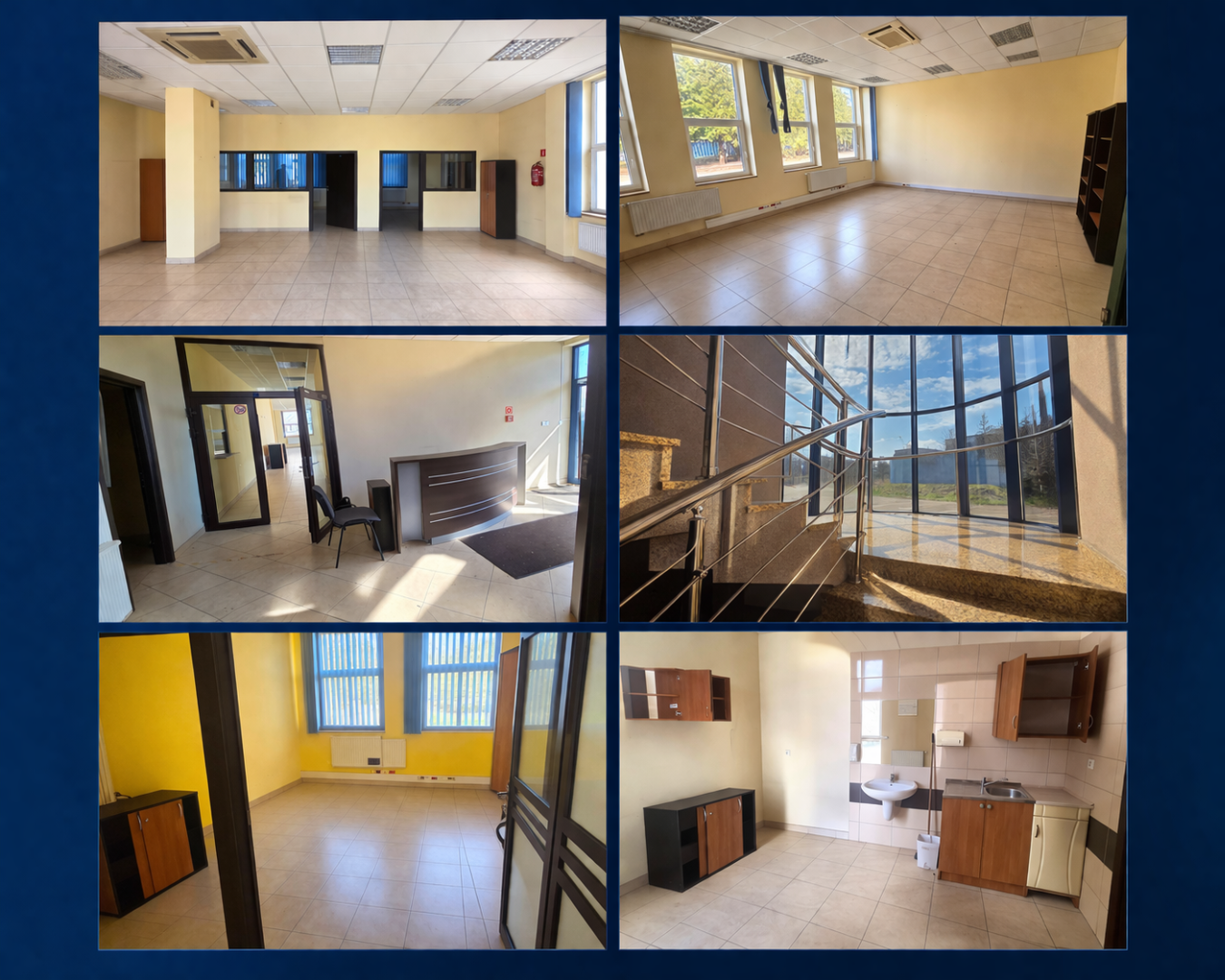 Budynek jest podzielony na wiele niezależnych pomieszczeń biurowych. Do dyspozycji najemcy pozostają również zaplecze socjalne (kuchnia), toalety oraz wydzielone miejsce pod recepcję/portiernię.