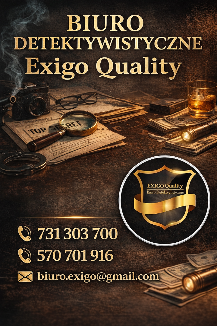Szukasz rzetelnej pomocy detektywistycznej? Exigo Quality pomaga klientom już od 10 lat, oferując profesjonalne i dyskretne usługi detektywistyczne dla osób prywatnych oraz firm. Gwarantujemy pełną poufność, indywidualne podejście do każdej sprawy oraz skuteczne działania oparte na doświadczeniu.