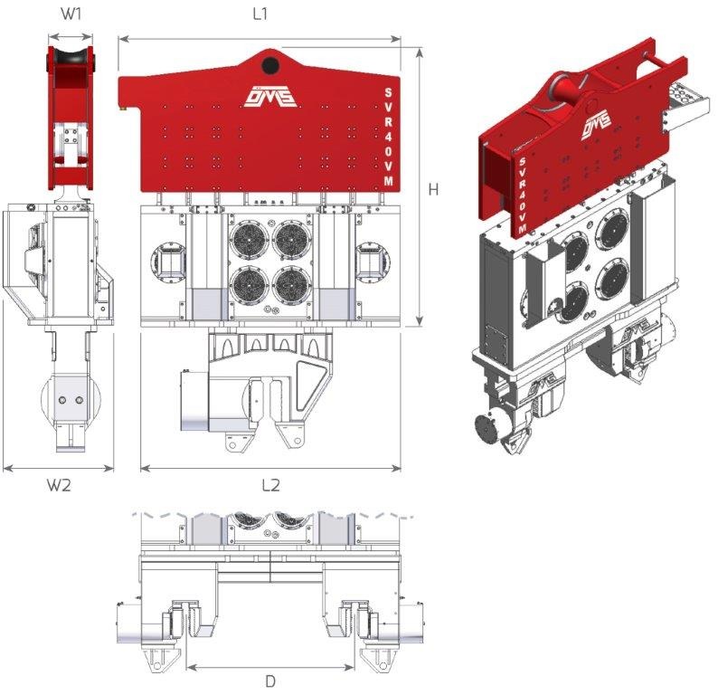 Fabrycznie nowy wibromłot SVR 40VM wysokiej częstotliwości wraz ze zmiennym momentem mimośrodowym w komplecie z zasilaczem PP 1072-V i uniwersalnym zaciskiem SCN 350. Do pracy na dźwigu lub palownicy