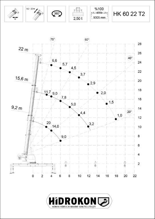 Max długość wysięgnika hydraulicznego: 22 m